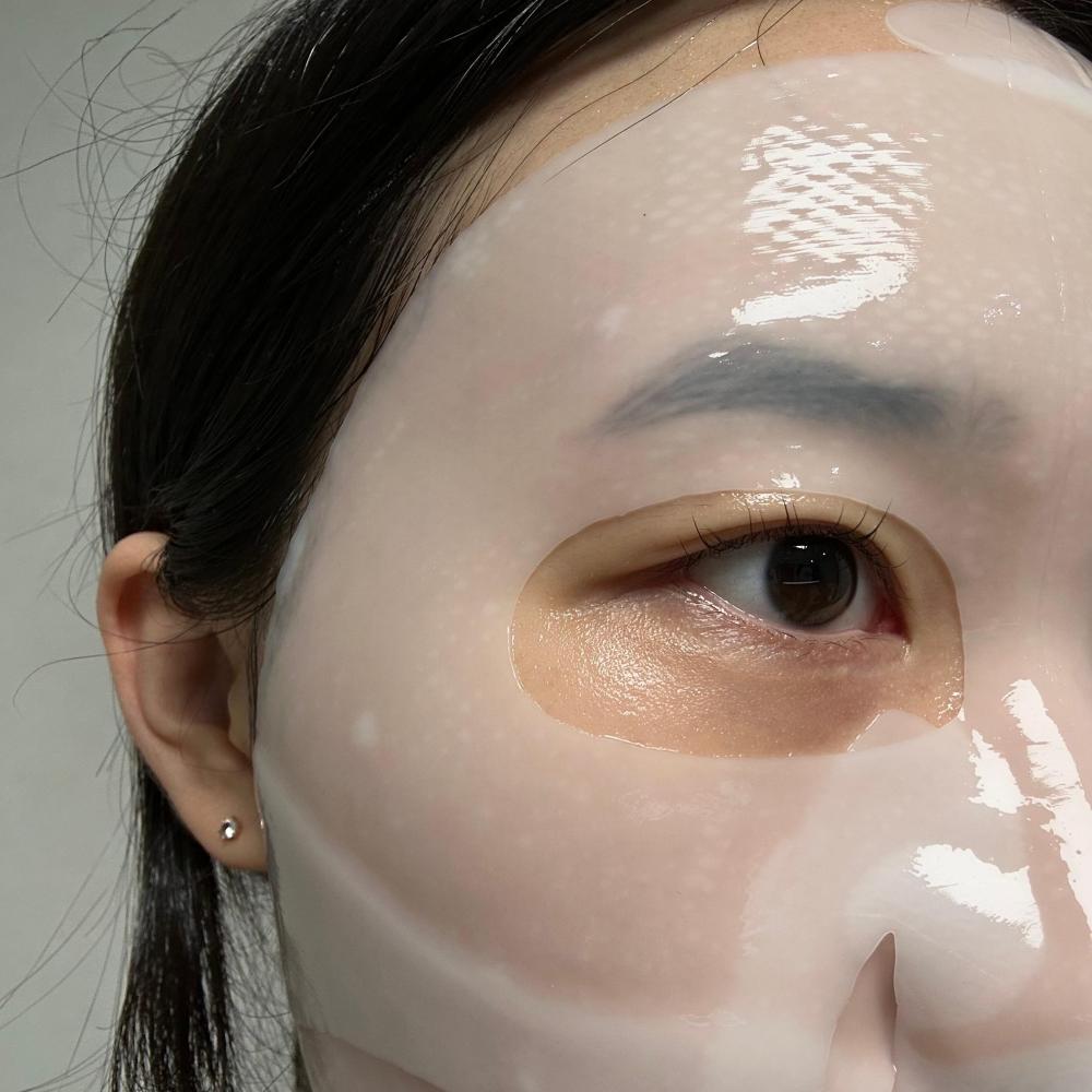 겔시트 한쪽면은 엠보로 되어있는데 엠보있는 부분이 피부에 닿도록 붙여주면 됩니다 여러가지 콜라겐팩 많이 써봤는데 엠보가 들어가있어서 그런지 다른 겔마스크보다 시트가 얇은 느낌이었는데 팩하고 난뒤에는 보습감 충분했어요